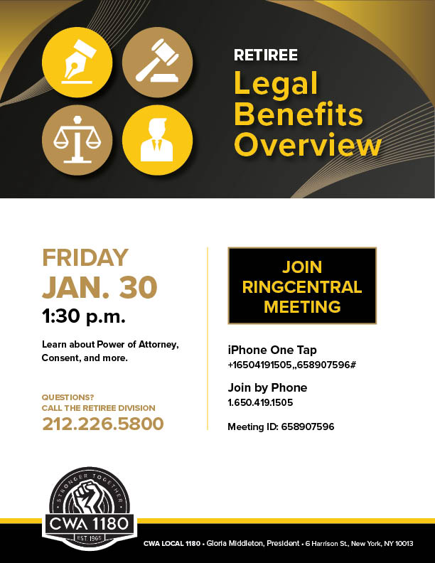 Join us for a virtual overview of the benefits available to Local 1180 Retirees. Bring your questions and get the answers and support you need regarding your benefits. | Join from PC, Mac, iOS or Android: iPhone One Tap Join by Phone Meeting ID: 864 3895 5322 | |